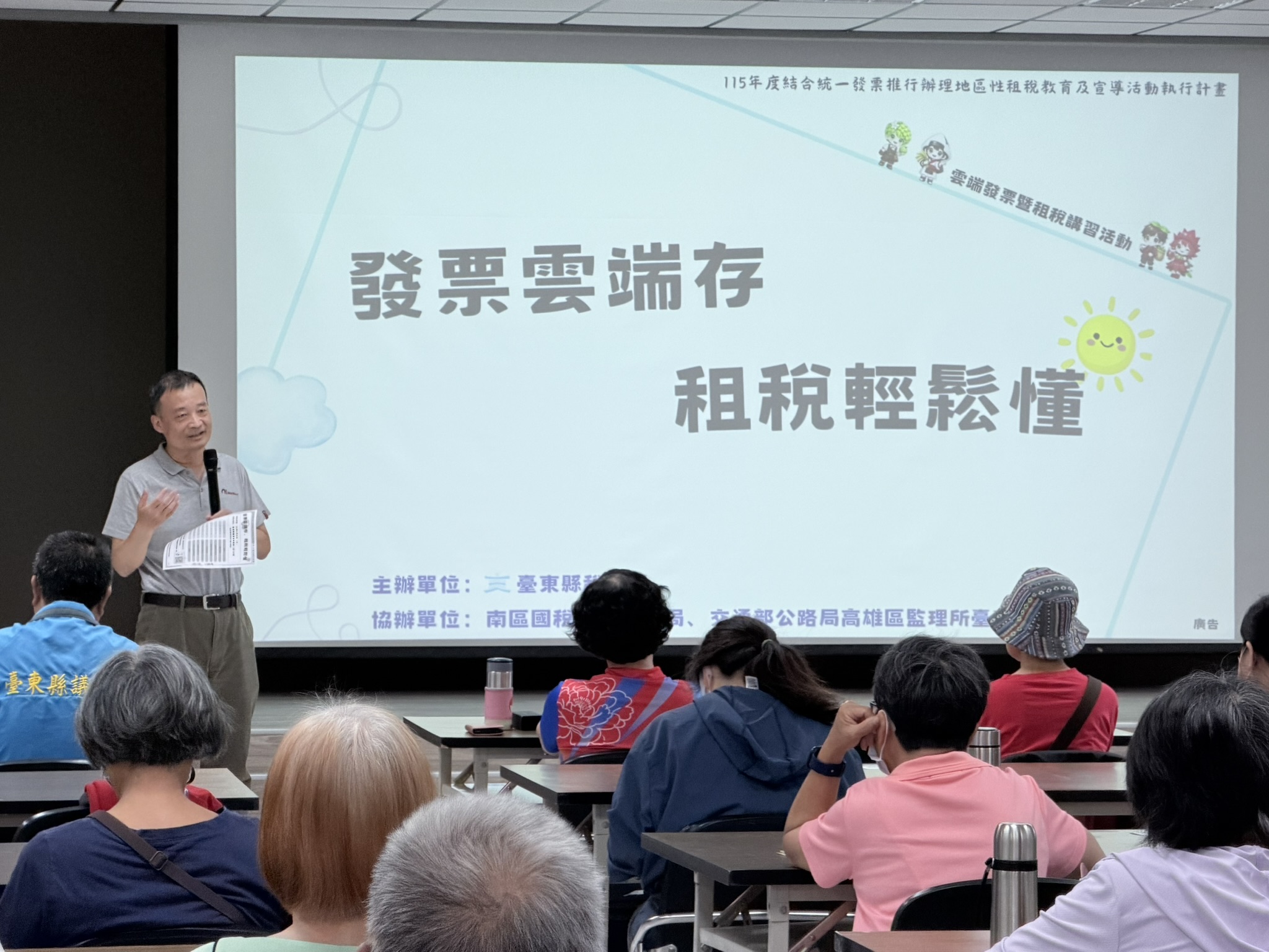 為加強推廣雲端發票及各項租稅新知,臺東縣稅務局於4月15日邀請財政部南區國稅局臺東分局及臺東監理站共同舉辦「發票雲端存,租稅輕鬆懂」雲端發票暨租稅講習活動,透過跨機關合作宣導,結合國稅局及監理站資源,一次性提供民眾更完整的稅務與車輛管理知識,更大化活動參與效益。