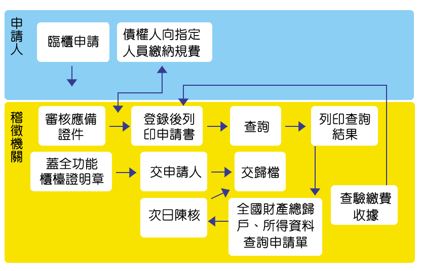 債權人查調債務人課稅資料申請書(簽名或蓋章)。 |